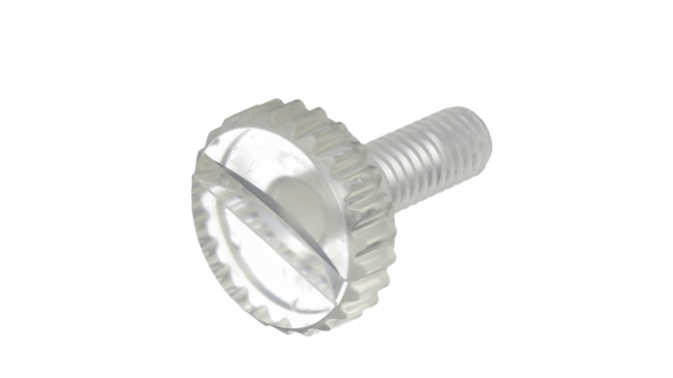 Queste viti a testa zigrinata sono perfette per le applicazioni in cui è richiesta una vite in polimero ad alta resistenza. L'aggiunta di una scanalatura consente l'inserimento di un cacciavite a lama piatta.